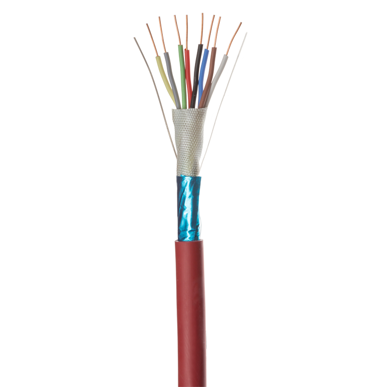 Câble blindé résistant au feu adapté à la transmission de signaux et de commandes pour systèmes d'alarme vocale lorsque une sécurité incendie maximale est requise. Composé de 4 paires de conducteurs en cuivre recuit de section 0,8 mm². Pour des installations permanentes en intérieur ou dans des environnements humides. Gaine extérieure rouge. Vendu en rouleaux de 200 m.