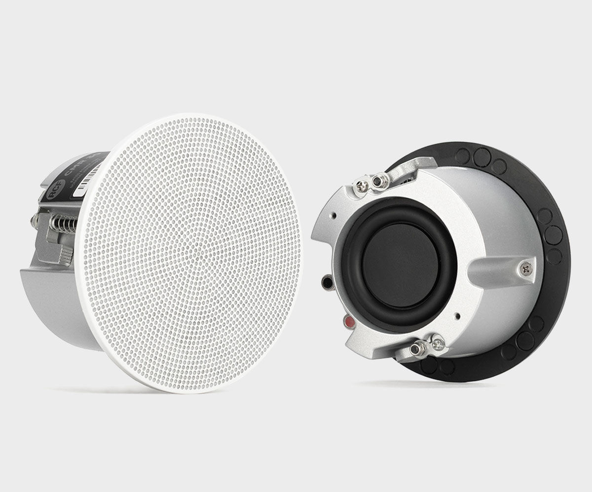 CMR 30 is a full-range, in-ceiling speaker designed to meet a wide variety of needs, from delivering clear background music in retail spaces to ensuring intelligible speech in meeting rooms. Thanks to its elegant, discreet design and accurate details, this multipurpose speaker effortlessly pairs with any building’s aesthetic. The high-quality transducer guarantees precise reproduction across the entire frequency band and provides impressive sound pressure levels for such a compact loudspeaker. Additionally, the bottom passive radiator enhances low frequencies, making it ideal for music playback. Installation is straightforward using two clamps, and the magnetic grille—supplied in both white and black— offers a seamless finish.
