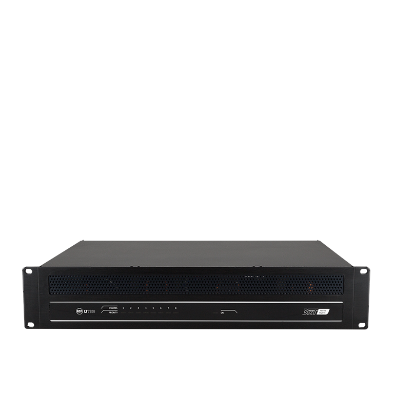 L’unité LT 7208EN possède 8 transformateurs (80 W chacun) afin de convertir les sorties enceintes 8 ohms de l’unité maître MU 7100EN en une lignes à tension constante (100 - 70 - 50 V) pour les enceintes équipées de transformateurs de ligne. Cela permet de mettre en place plusieurs configurations de puissance, telles que 8 x 80 W, 4 x 160 W et 2 x 320 W.