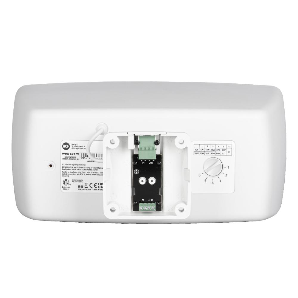 La WMR 60T est une enceinte murale deux voies polyvalente, adaptées à un grand nombre d'applications. Grâce à son design élégant et discret, étudié dans les moindres détails, la WMR 60T s'accorde à tout style de bâtiment. Ses haut-parleurs de haute qualité garantissent une reproduction musicale précise à toutes les fréquences et assurent des niveaux de pression acoustique impressionnants pour une enceinte aussi compacte. L'installation est facilitée par le panneau de connexion dédié, situé à l'intérieur du support mural (inclus). Il permet à l'installateur de régler d'abord l'inclinaison souhaitée, de fixer l'enceinte et enfin de la connecter sans aucun outil.