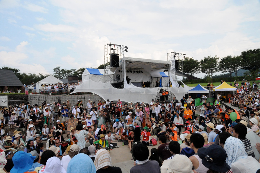 Una delle parti più suggestive dell'evento è stata la performance dell'orchestra free-jazz di 300 elementi, composta da musicisti professionisti e dilettanti, che hanno tutti suonato con il cuore per dimostrare il loro sostegno alla gente di Fukushima.