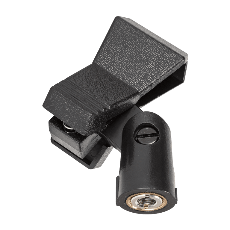 - Supporto universale a pinza con connettore interno passo 5/8" ed apertura dai 15 ai 38 mm per microfoni