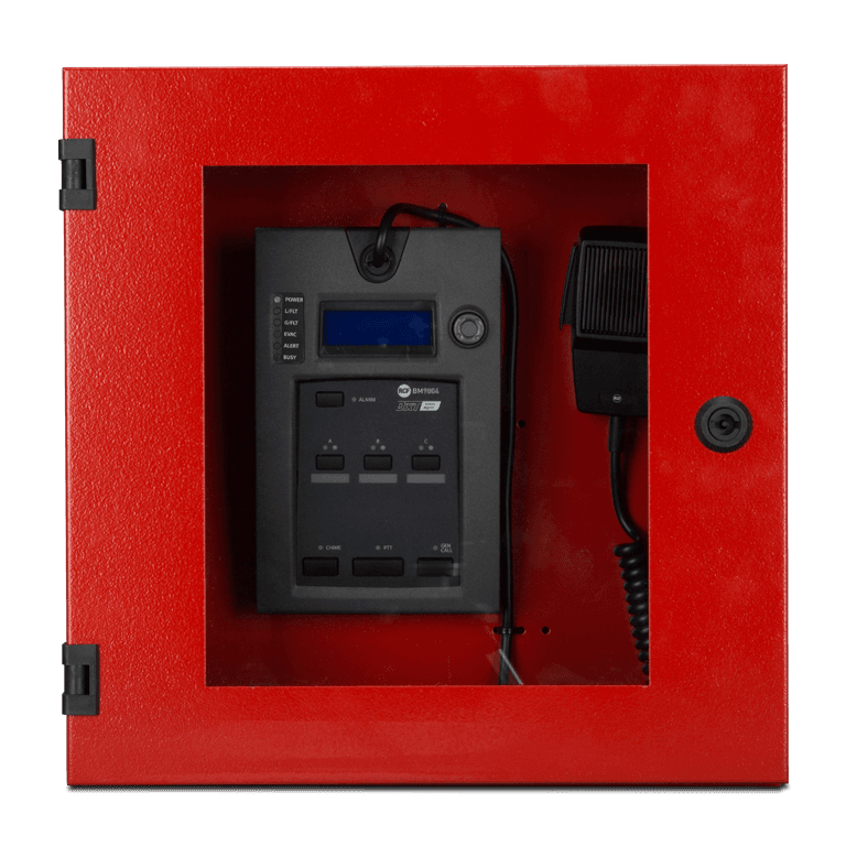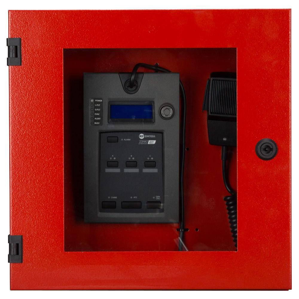 BM 9804FM è una base microfonica di emergenza dedicata esclusivamente al sistema di allarme vocale DXT 9000, e può essere utilizzata sia per annunci dal vivo che per l'attivazione di messaggi preregistrati. È dotata di funzionalità di autodiagnostica completa e reporting dello stato del sistema, in conformità alla norma EN 54-16: 2008. È possibile collegare in cascata fino a 16 basi su ciascuna delle due linee di microfoni, e la prima è alimentata direttamente dall'unità centrale, mentre le altre richiedono adattatori locali a 24 V CC.