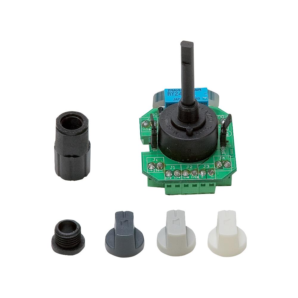 Il commutatore CT 61 a 6 posizioni (5 + off) abbinato ad un trasformatore di linea (non incluso) RCF TL 128 (o equivalente) funge da attenuatore di volume per un gruppo di diffusori acustici (in un sistema a tensione costante 100 V) aventi trasformatori di linea ed una potenza complessiva non superiore a 120 W. È dotato di relè (attivabile tramite un comando 24 V c.c.) per effettuare annunci con volume forzatamente al massimo oppure per inserire una seconda linea 100 V (non soggetta al controllo di volume), ma è anche configurabile per operare con linee a 3 fili (per ottenere il volume massimo all’uscita senza utilizzare il relè 24 V c.c. interno). Il commutatore CT 61 può essere installato su qualunque telaio portafrutti (per impianti elettrici civili) semplicemente forando un falso polo ed avvitando il modulo; il trasformatore TL 128 dovrà essere posizionato separatamente (es. dentro un’altra scatola). Sono fornite a corredo 3 manopole, ciascuna di colore diverso: bianco, argento, antracite.
