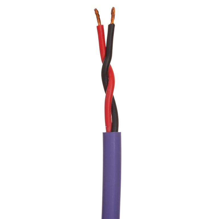 Cavo antifiamma adatto alla trasmissione di segnali audio su linee altoparlanti a 100 V per sistemi di allarme vocale, quando è richiesta la massima sicurezza nei confronti dell'incendio. Costituito da 2 conduttori di rame ricotto con sezione 1 mmq. Per posa fissa all'interno in ambienti normali o umidi. Guaina esterna in colore viola. Venduto in bobine di 200 m.