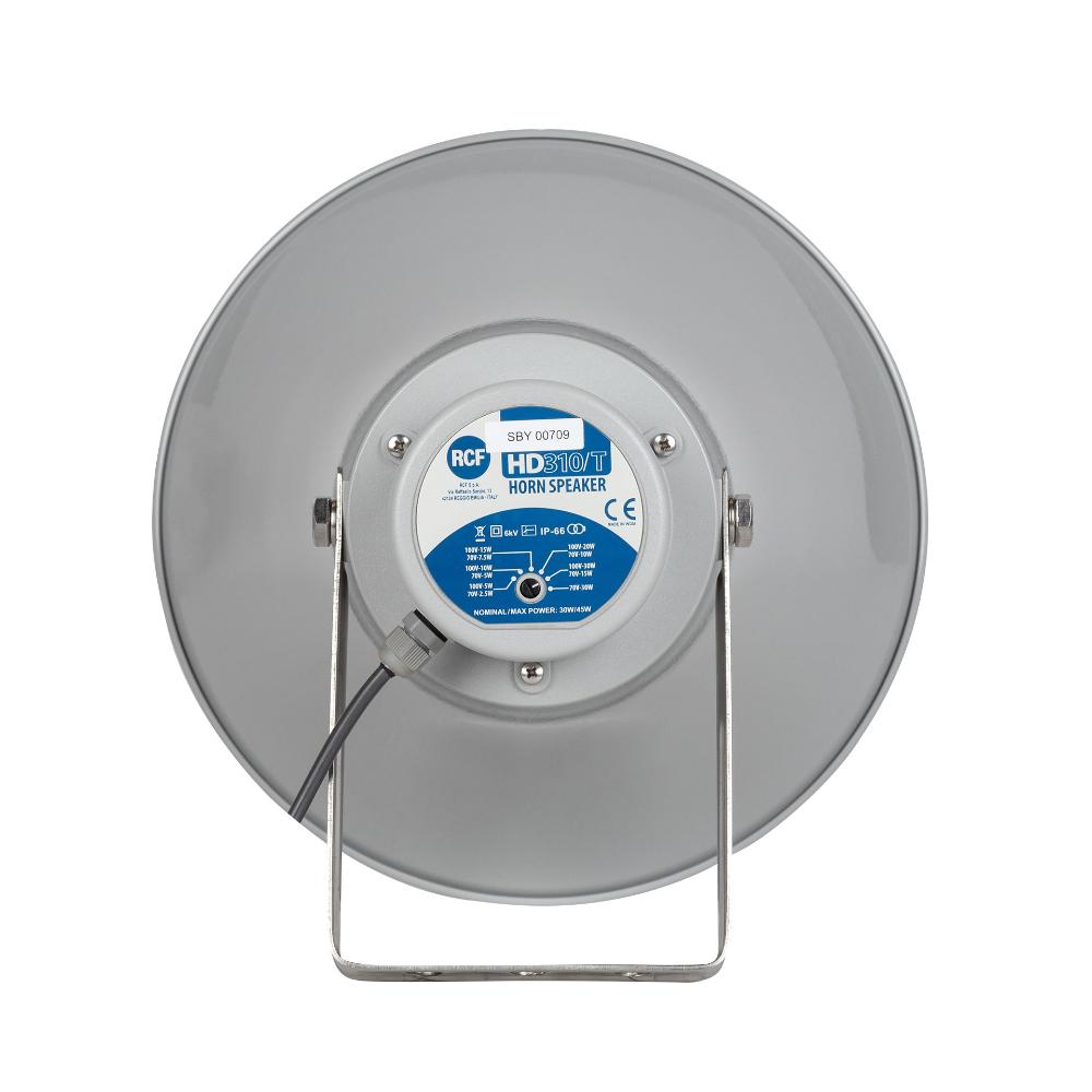 HD 310/T è un diffusore a tromba compatto a tenuta stagna progettato per fornire un’elevata efficienza. Si caratterizza per una riproduzione del suono ad elevata intelligibilità, unita ad una bassa distorsione. Il trasformatore di linea che lo equipaggia permette il collegamento a linee a tensione costante di 70 e 100V, con possibilità di selezionare la potenza diffusa tramite un commutatore rotativo accessibile dall’esterno.