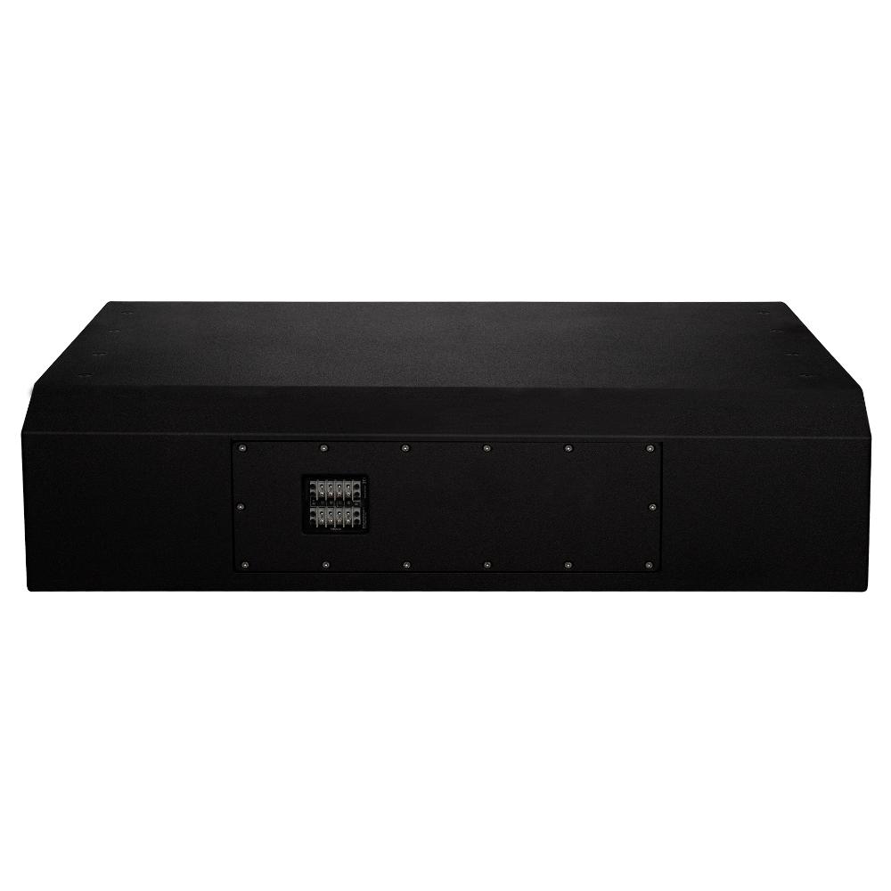 HVL 15-L1 is a three-way, bi-amp loudspeaker system for long-throw applications, outfitted with 2 x 15” woofers, 2 x 10” midranges, and 2 x 4.0” voice coil, titanium dome compression drivers. Equipped with the latest generation of RCF precision transducers with powerful neodymium magnets, HVL 15-L1 provides very high output and accurate sound and voice reproduction. The system, driven in bi-amped mode, can produce a max SPL of 144 dB MHF, handling 1000 W RMS (LF) + 900 W RMS (MHF). An internal passive filter provides crossover and equalization between the midranges and the compression drivers. The horizontal coverage is 90°, and the vertical coverage is 30°. A heavy-duty, weatherproof barrier strip provides connections. The cabinet is made of Baltic birch plywood. The finishing is a waterproof, textured, polyurea coating. The grille is in epoxy coated heavy-duty steel with open-cell fibers and water repellent woven-fabric backing. The back of the cabinet is shaped for under-balcony installation.
