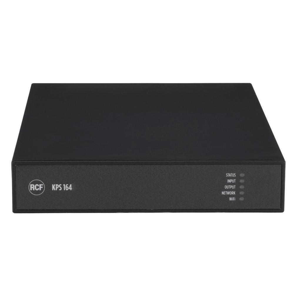 KPS 164 è un amplificatore professionale a 4 canali con potenza totale di 640 W, progettato per le più esigenti installazioni audio, dove flessibilità, affidabilità e controllo avanzato son essenziali. Dotato di tecnologia di amplificazione in Classe D e DSP integrato, offre una gestione completa e precisa del segnale, ed una configurazione intuitiva tramite il software proprietario RDSpace. La libreria di preset per diffusori RCF rende il processo ancora più semplice ed ottimizzato. Grazie alla tecnologia Ethernet nativa è l’ideale per sistemi distribuiti con controllo indipendente delle zone, mentre l’access point wireless integrato consente il collegamento diretto con dispositivi mobili.