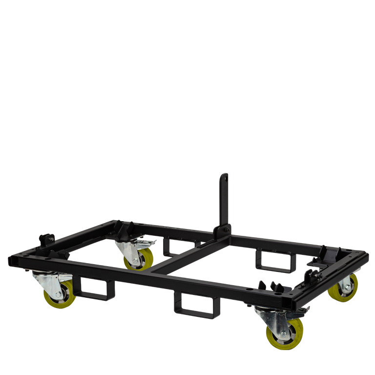 Il robusto carrello RCF KART può trasportare fino a 4 cabinet in completa sicurezza. 4 ruote incluse.