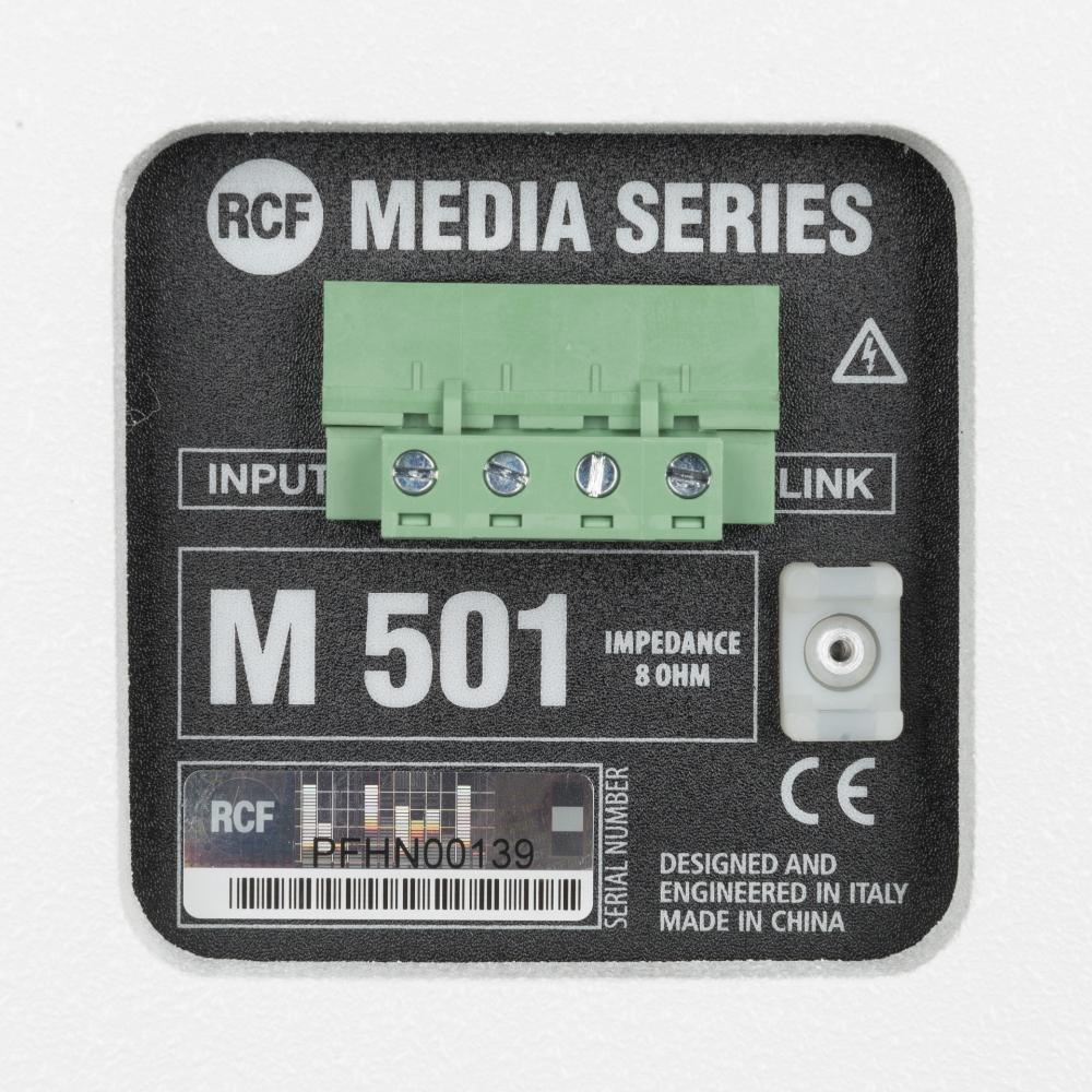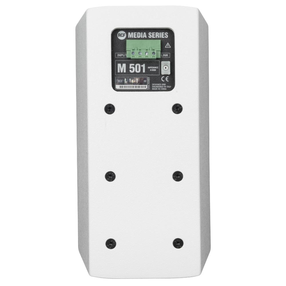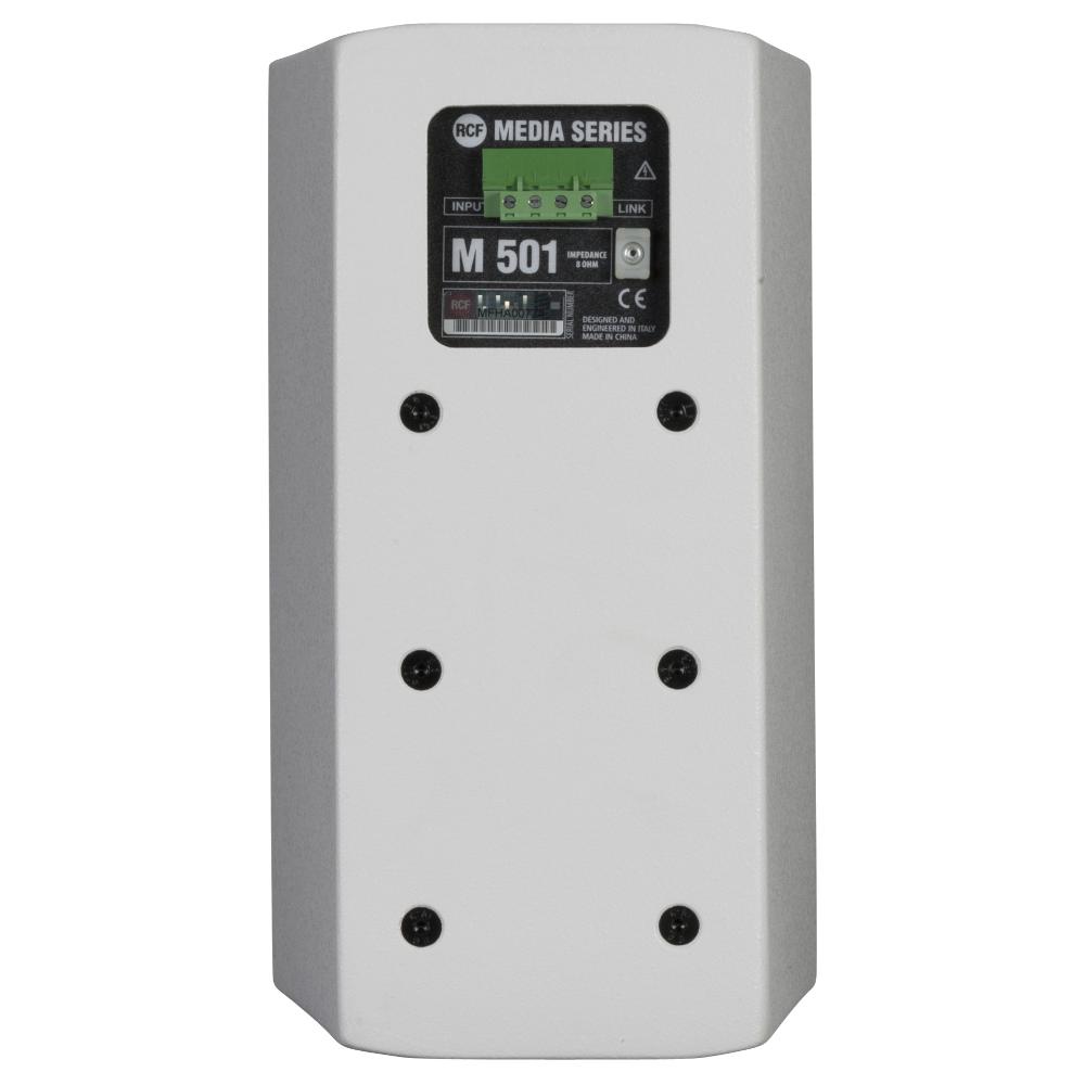 M 501 è un diffusore a 2 vie full range polivalente, adatto per una vasta gamma di installazioni. Grazie alla compattezza, al design elegante e discreto e alle rifiniture curate, M 501 è indicato in quasi tutte le condizioni ambientali e architettoniche. Il suono piacevole è particolarmente adatto per le applicazioni near field. Gli accessori inclusi per l’installazione permettono il montaggio a parete o a soffitto per le applicazioni più diverse. I diffusori M 501 possono raggiungere SPL (livelli di pressione sonora) e livelli di suono non distorto ben superiori a quelli che ci si aspetterebbe da soluzioni così compatte. I diffusori M 501 raggiungono sensibilità elevate tipiche dei cabinet PRO audio grazie all’uso di magneti di grandi dimensioni e una qualità del suono ad alta fedeltà con risposta in frequenza ampia e omogenea grazie al dome tweeter in titanio con guida d’onda. Il sistema di crossover compensato a bassa impedenza (“LICC”) comprende un dispositivo di protezione per le alte frequenze.