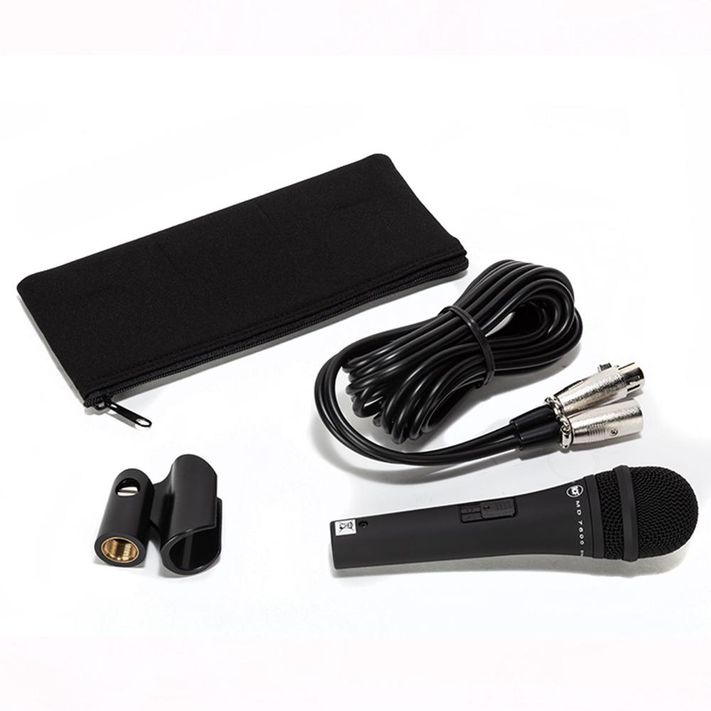 Microfono dinamico unidirezionale con connettore XLR a tre poli, dotato di filtro anti-pop interno e di interruttore ON / OFF con blocco di sicurezza inseribile. MD 7600 è un microfono per applicazioni professionali che restituisce eccellenti voce e canto.caratterizzato da un’ottima sospensione della capsula che lo rende particolarmente insensibile alla manipolazione.