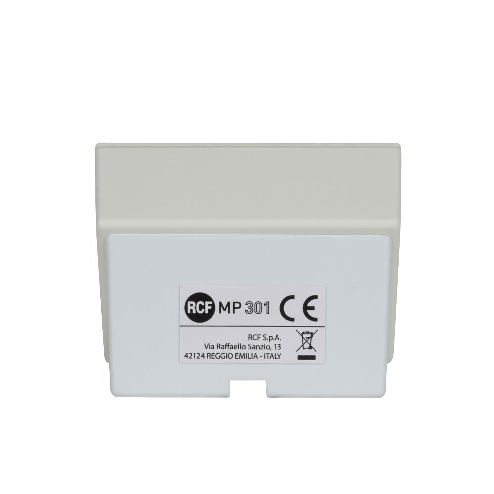 I diffusori acustici MP 301 devono essere installati in prossimità delle postazioni utente e operatore. Sono realizzati in materiale plastico di colore bianco e incorporano al loro interno un altoparlante da 70 mm appositamente studiato per riprodurre con ottima intelligibilità il parlato. Di aspetto elegante e compatto, possono essere fissati per mezzo del nastro biadesivo ad alta tenuta di cui sono corredati. In dotazione viene fornita anche una piattina bipolare lunga 5 m per il collegamento con l’unità di controllo e amplificazione MP 341.