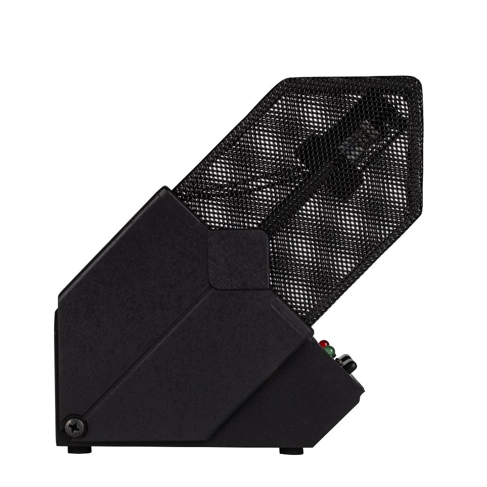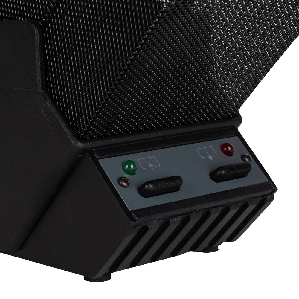 E’ composta da un microfono a condensatore dalle ottime caratteristiche direzionali, collocato in un contenitore pressofuso in lega di alluminio di colore grigio antracite e protetto anteriormente da una griglia di acciaio inox verniciata a forno. Il design particolarmente curato e le dimensioni contenute consentono un agevole inserimento in qualsiasi luogo. La base è dotata di due pulsanti per attivare rispettivamente le linee operatore-utente e utente-operatore. L’attivazione di ciascuna di esse è segnalata da un corrispondente diodo luminoso. Vi è la possibilità di duplicare i comandi per effettuare un controllo a distanza (es. tramite interruttore a pedale).