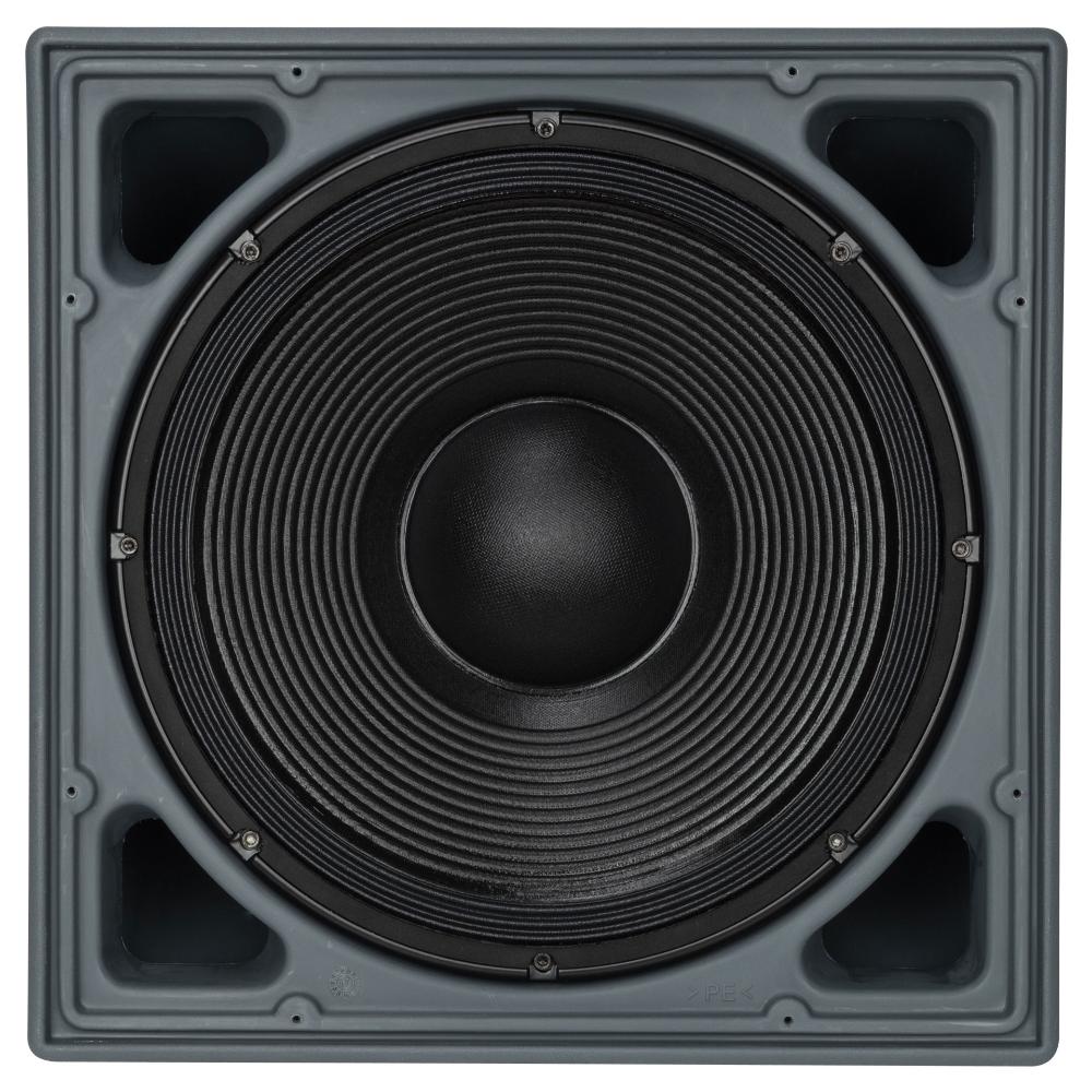 P 8015S è un subwoofer bass reflex resistente alle intemperie dotato di un trasduttore per basse frequenze al neodimio da 15" con una bobina da 4" che offre potenza ed efficienza per una vasta gamma di applicazioni professionali all'aperto o al chiuso. Il P 8015S è stato progettato specificamente per rafforzare la gamma delle basse frequenze nei sistemi di array di altoparlanti della serie P. Il cabinet monoblocco rotostampato in polietilene a media densità è impermeabile e protetto dai raggi UV. É dotato di inserti M10 in ottone (12x) e una staffa a U in acciaio inossidabile resistente alla corrosione con distanziali (2x) per il montaggio a 90°. La griglia anteriore in alluminio è verniciata a polvere con rivestimento interno idrorepellente, il logo anteriore è ruotabile.